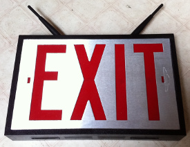 I added a few pictures of my old wireless router, ExitSign, to the funishings page. I took these pictures today just a few minutes before carrying the router to the trash. (Though, as with other modified computing devices past, I saved the front panel as a memorial.)